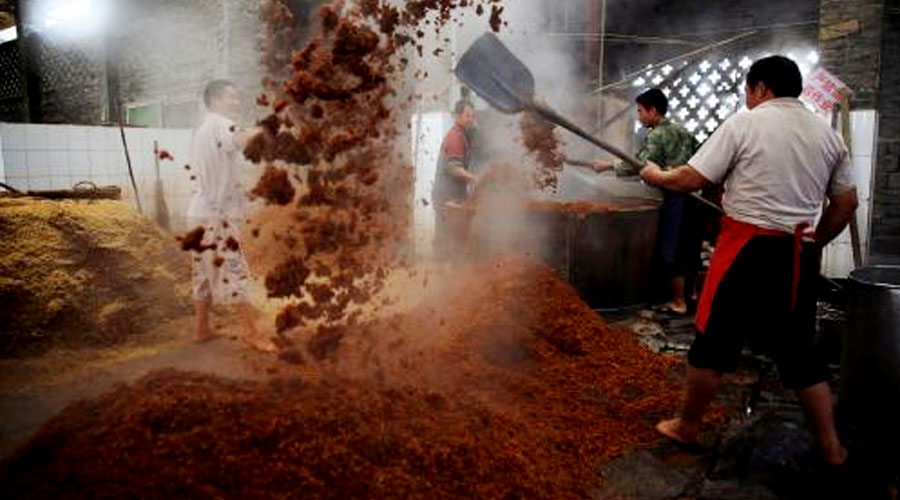 酱香酒生产周期较长,整个工艺流程至少耗时5年,所以普通型酱香酒一出厂,可以说已经是五年的“年份酒”了。每年重阳节开始投料,经九次蒸煮,八次发酵、七次取酒,同批原料要历时一年,再经三年以上酒库存放,最后精心勾兑,普通型酱香成品酒方能包装出厂。