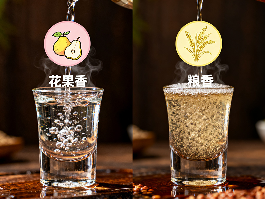 就像老酒客常说的 “开瓶闻浮香,先辨新与陈”:新酒的浮香偏清亮,花果气、粮香更突出;存放 3 年以上的老酒,浮香会变得柔和,原来的清甜会淡一些,多了点轻微的陈香,像晒过太阳的旧书味,不刺鼻,却更让人想凑近闻。