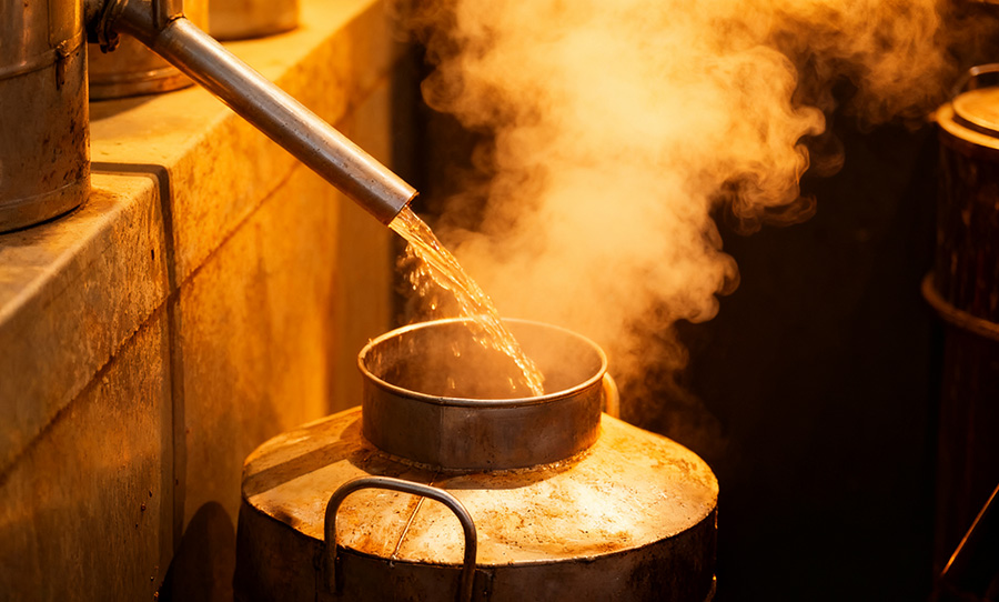 - 高温馏酒:蒸馏取酒时,温度要控制在 40℃以上,比其他白酒高 20℃左右。高温能把酒体中的低沸点杂质(比如醛类、硫化物)挥发掉,留下更纯净、更醇厚的酒液,喝起来不辣喉、不上头。